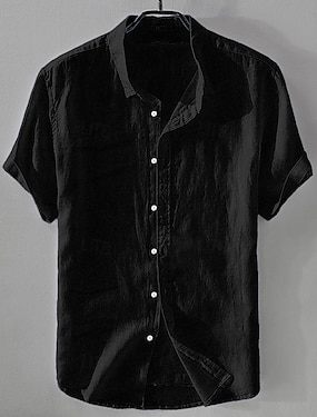Pánské Košile Lněná košile Košile pro volný čas Bavlněná košile Bez vzoru Dovolená ulice Černá Bílá Světlá růžová Modrá Krátký rukáv Přehnutý Léto Oblečení Tlačítko dolů