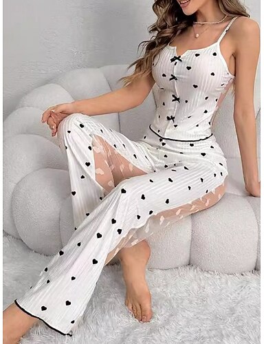 dámské valentýnské pyžamové soupravy srdce móda pohodlí domov valentýn denně satén hedvábí prodyšná ramínka pásek bez rukávů top šortky bez zad elastický pas léto jaro domácí outfity