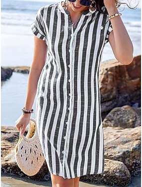 Dámské Mini šaty Imitace bavlny a lnu Košilové šaty Bavlněné lněné šaty Zimní šaty Na běžné nošení Dovolená Běžný Bez vzoru Krátký rukáv Do V Vodní modrá Černá Bílá Žlutá Léto