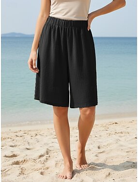 Dámské Capri kalhoty Imitace bavlny a lnu Kraťasy Letní šortky prázdniny Základní Na běžné nošení Délka kolen Středně vysoký pas Bez vzoru Elastický pas Pohodlné Prodyšné Neelastické Denní Venkovn