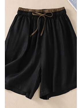 Dámské Imitace bavlny a lnu Kraťasy Letní šortky prázdniny Módní Šik ven Délka kolen Vysoký pas Bez vzoru Šňůrky Kapsy Elastický pas Pohodlné Prodyšnost Neelastické Denní Dovolená ulice Černá Bord