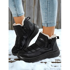Dámské černé kotníkové boty na platformě s podšívkou z umělé kožešiny, pohodlné a elegantní, s protiskluzovou podrážkou, ideální na zimu