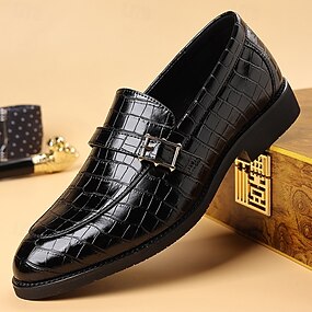 Pánské černé mokasíny z lakované imitace kůže s texturovaným šupinovým vzorem a kovovou přezkou, elegantní nazouvací společenské boty na svatby, obchodní a formální akce