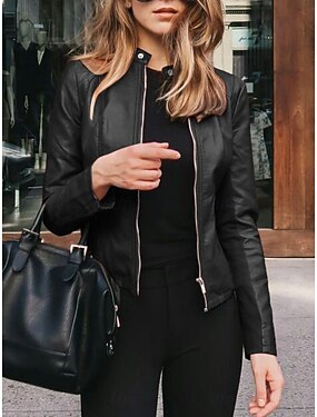Dámské Deri Ceketler Motorkářská bunda Venkovní ulice Denní nošení Podzim Zima Krátké Kabát Běžný Zahřívací Prodyšné stylové Na běžné nošení Saka Dlouhý rukáv Bez vzoru Celý zip S kapsami Čern
