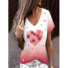 Valentýn Dámské Tričko Tričko Top Tisk Květinový Grafika stylové Klasické Na běžné nošení Krátký rukáv Do V Běžné topy Denní Jdeme ven Víkend Světlá růžová Růžová Léto Jaro
