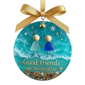 Akrylová vánoční ozdoba z mořského skla, ručně vyráběná ozdoba z mořského skla na zavěšení na vánoční stromeček, dárky pro nejlepší kamarádku, dárky pro přátelství