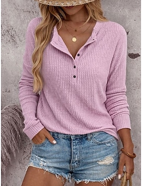 Dámské Halenka Knoflíky Pevná barva stylové Na běžné nošení Dlouhý rukáv Do V Běžné topy Denní Vodní modrá Světlá růžová Rubínově červená Trávová zelená Tmavě šedá Jaro Podzim Zima