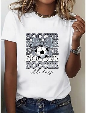 Dámské Tričko Tričko Top Tisk Grafika Fotbal stylové Klasické Na běžné nošení Krátký rukáv Tričkový Běžné topy Denní Sport Jdeme ven Vodní modrá Černá Bílá Světlá růžová Rubínově červená Léto Jaro