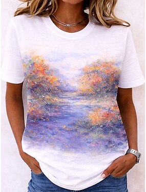 Dámské Tričko Tisk Tónované Grafika Abstraktní stylové Klasické Na běžné nošení Krátký rukáv Tričkový Běžné topy Denní Vodní modrá Světlá růžová Fialová Trávová zelená Léto Jaro