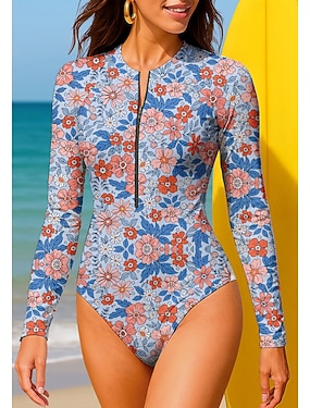Dámské Běžný Ochrana proti vyrážce Plavky Atletické plavky Květinový Zapni Vyjímatelné vycpávky Přední zip UV ochrana proti slunci UPF50+ Ultra lehký (UL) Dlouhý rukáv Plavky Ochrana proti vyrážce