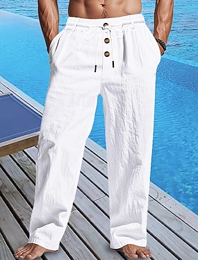 Pánské Plátěné kalhoty Kalhoty Letní kalhoty Volné kalhoty Plážové kalhoty Šňůrky Elastický pas Straight-Leg Bez vzoru Pohodlné Prodyšné Plná délka Denní Venkovní Dovolená prázdniny Módní Černá Bílá