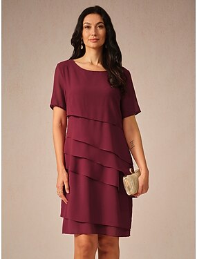 Dámské Pracovní šaty Plášťové šaty Šifonové šaty Módní Midi šaty Vícevrstvé Tričkový Krátký rukáv Bez vzoru Volný Fialová Vodní modrá Trávová zelená Léto Jaro S M L XL XXL