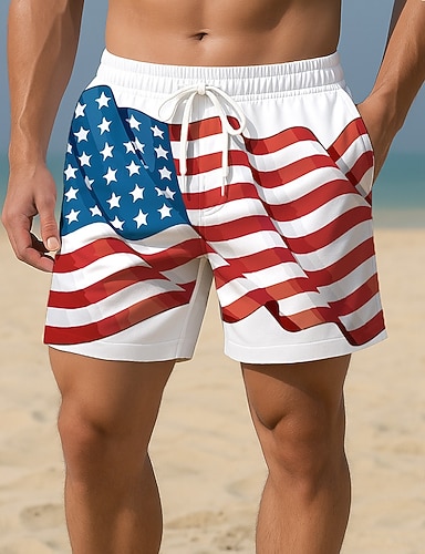 Pánské Americká americká vlajka Vlastenec Plavecké trenýrky Plavky pánské Surfovací šortky Středně vysoký pas Šik ven Havajské Ležérní Denní Dovolená Kapsy Šňůrky Elastický pas Návrhář Oblečení