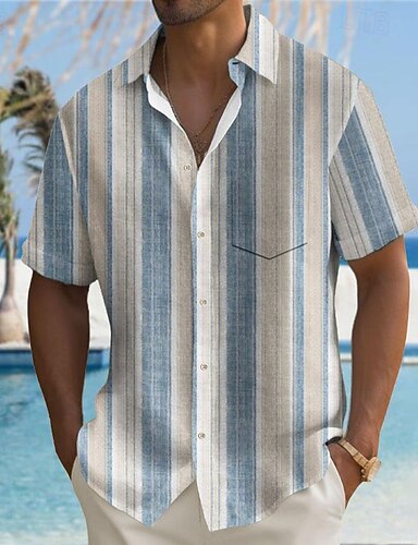 Pánské Košile Letní košile Košile pro volný čas Košile na knoflíky Vodní modrá Světle modrá Krátký rukáv S proužky Klopa Dovolená Denní nošení Oblečení Umělé hedvábí Módní Havajské Na běžné nošen