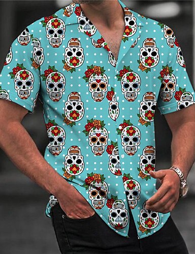 Pánské Květinový Lebky Grafické tisky Košile Havajská košile Krátký rukáv Košile Přehnutý Ležérní Havajské Černá Vodní modrá Tisk Tlačítko dolů Oblečení Tropický vzhled Módní Havajské Měkké