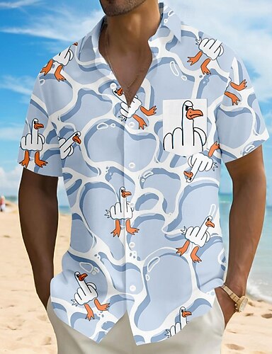 Pánské Geometrický Legrační Kachna Košile Havajská košile Košile na knoflíky Krátký rukáv Havajské Dovolená Oblečení na pláž Léto Přehnutý 3D tisk Jedna přední kapsa Len jako košile Vodní modr