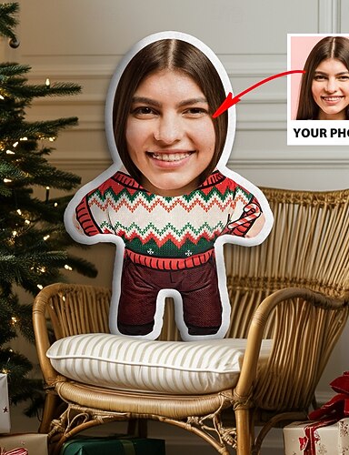 Vánoční osobní obličejový polštář přizpůsobený fotografii Minime humanoidní polštář legrační vtipný dárek k Vánocům pro něj a pro ni panenka Mini Me