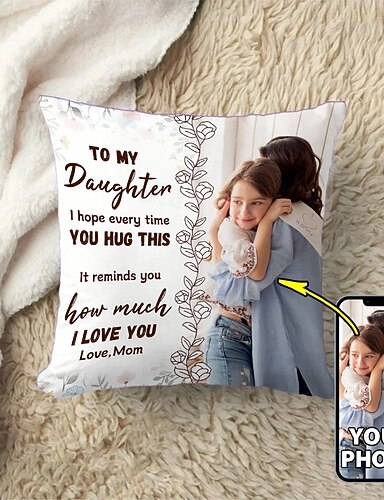 Přizpůsobený povlak na polštář Přidejte svůj obrázek Nejlepší dary Personalizovaný dárek Foto design Obraz Módní Pohodlný povlak na polštář 1ks Na zakázku pro milovanou dceru