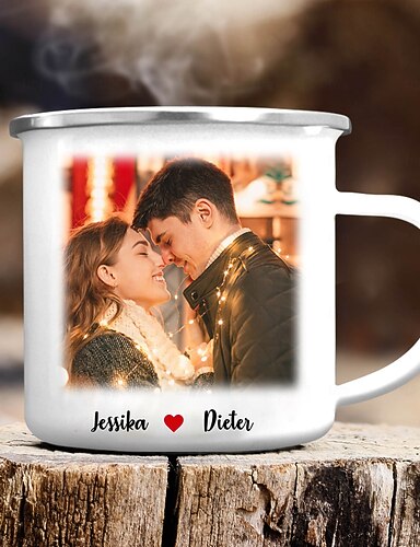 personalizovaný fotografický smaltovaný hrnek vlastní nejlepší dárek pro pár, přizpůsobitelný s fotografií a jménem, ideální pro každodenní použití, jedinečný dárek na Valentýna, ideální vánoční dárek pro milovníky, rodinu a přátele