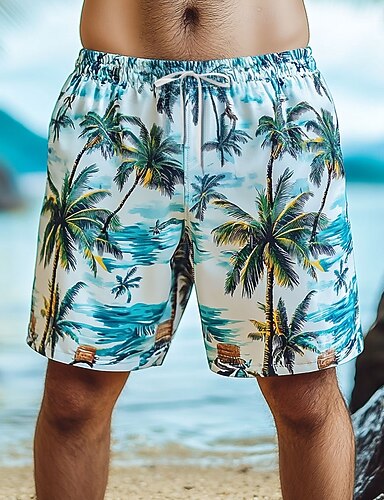 Pánské Kokosový strom Barevná Plavky pánské Surfovací šortky Pánské plavky Středně vysoký pas Havajské Na běžné nošení Dovolená Plážové Šňůrky s podšívkou ze síťoviny Elastický pas Návrhář Oblečení
