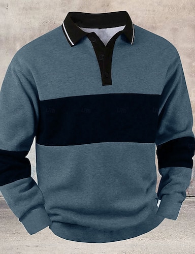 Pánské Proužky Pullover Rugby Polo Rugby polokošile Dlouhý rukáv Polo tričko Límeček Vinobraní Na běžné nošení Venkovní ulice Na den 3D tisk Knoflíky Jaro Podzim Zima Kaštanově hnědá Černá Vodní modrá