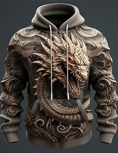 Pánské Grafika Zvíře Drak Kapuce Kapucky Mikina Módní Denní Dlouhý rukáv Kapuce Dovolená Outdoorové sporty Streetwear 5 7 Tisk Přední kapsa Jaro & podzim Návrhář