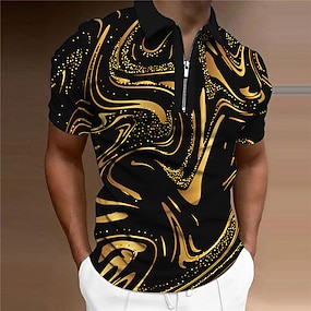 Pánské Geometrický Polokošile na zip Golfová košile Krátký rukáv Polo tričko Košile s límečkem Na běžné nošení Oblečení na dovolenou Formální oblečení Festivalové oblečení 3D tisk Polo na čtvrt zip