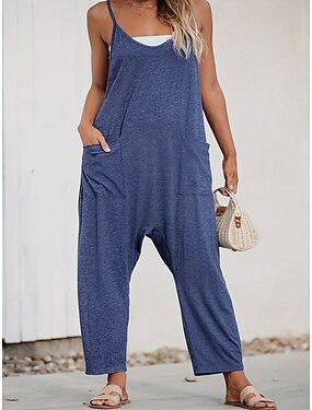 Dámské Běžný Kombinéza Šik ven Pevná barva Bez rukávů Do U Kapsy ulice Denní Běžný Černá Fialová Námořnická modř Léto