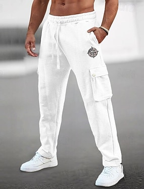 Pánské Tepláky Běžec Kalhoty Šňůrky Elastický pas Multi kapsa Bez vzoru Výšivka Pohodlné Prodyšné Ležérní Denní Dovolená Směs bavlny Sportovní Módní Černá Bílá