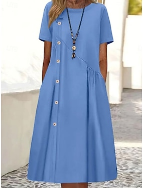 Dámské Midi šaty Imitace bavlny a lnu Úpletové šaty Volnočasové šaty Základní Na běžné nošení Denní Dovolená Běžný Bez vzoru Krátký rukáv Tričkový Vodní modrá Fialová Hnědá Léto