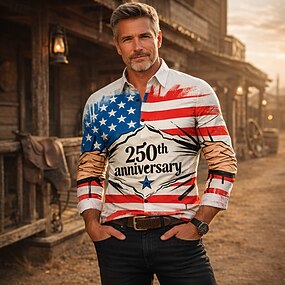 250. výročí USA Halenka / košile Geometrické tvary Retro Na běžné nošení 70. léta pro Pánské Dospělé Další výtisky pro Den nezávislosti 4.července Párty