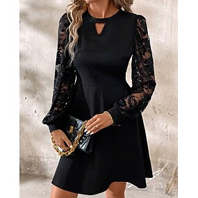 Dámské Mini šaty Černé šaty Flitrové šaty Krajkové šaty Volnočasové šaty Módní Moderní Denní Plážové Víkend Běžný Bez vzoru Dlouhý rukáv Tričkový Černá Léto Jaro Podzim
