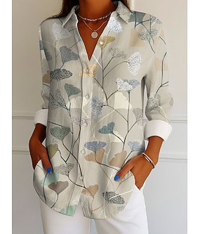 Dámské Košile Halenka Slátanina Knoflíky Květinový Na běžné nošení 3/4 délka rukávu Košilový límec Běžné topy Denní Bílá Trávová zelená Podzim Zima