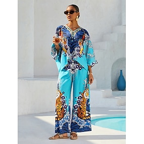Dámské Žena Kašmírový vzor Ležérní Vodní modrá Paisley 3/4 rukáv Elegantní Běžné Denní Tričkový Kolo Léto Jaro Podzim