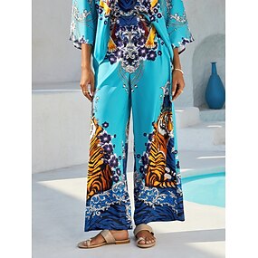 Dámské Žena Široké nohavice Plná délka Tisk Vysoký pas Elegantní Čechy prázdniny Ležérní Plážová dovolená Meruňková Léto XS S M