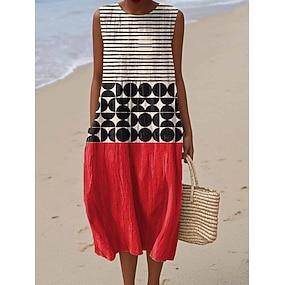 Womenské midi šaty jako sundress šaty A střihu dovolená volnočasové boho plážové víkendové nošení volný střih grafické geometrické bez rukávů kulatý výstřih modrá červená hnědá zelená léto jaro