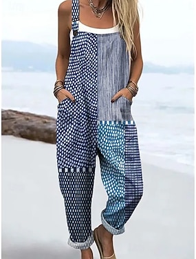 Dámské Kombinéza Aktivní Grafika Bez rukávů Bez rukávů Široké nohavice Do U Kapsy Knoflíky Denní Dovolená Volný Vodní modrá Léto