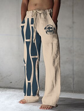 Pánské Plátěné kalhoty Kalhoty Letní kalhoty Plážové kalhoty Slátanina Elastický pas Straight-Leg Geometrický Pohodlné Prodyšné Plná délka Ležérní Denní Dovolená prázdniny Módní Bílá