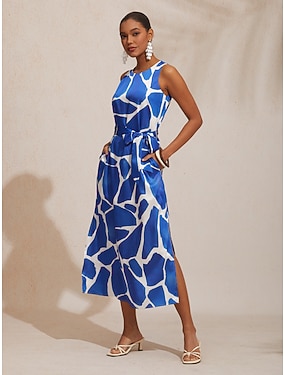 Dámské Žena Volnočasové šaty Vodní modrá Bez rukávů Geometrický Léto Pro více ročních období Kulatý prázdniny Moderní S M L