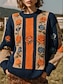 Dámské Svetr Rolák Vinobraní Denní Na běžné nošení Květinový Grafika Rýhovaný Tričkový Pletený Tisk Dlouhý rukáv Běžné topy Plést Venkovní Víkend Námořnická modř Podzim Zima