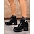 Dámské černé kotníkové boty na šněrování z umělé kožešiny s robustními podpatky – teplé zimní sněhule na vánoční trhy, do volného času i do moderního streetwearu