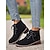Dámské černé vojenské boty z umělé kůže, klasické kotníkové boty se šněrováním a robustní podrážkou, ideální pro podzimní outfity, procházky venku a streetwear looky