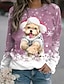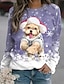 Vánoce Dámské Tričko Grafika Pes Vánoce Vinobraní Módní stylové Dlouhý rukáv Tričkový Kulatý Běžné topy Denní Víkend Tisk Vodní modrá Fialová Fuchsiová Trávová zelená Khaki Podzim Zima