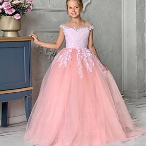Šaty pro květinovou družičku děti Dívčí Princeznovské šaty Výkon Svatební Párty Elegantní Krásná Síťka Pevná barva Bez rukávů Pod rameny Bílá Světlá růžová 4 roky +