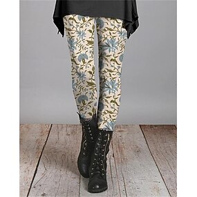 Dámské Kalhoty chinos Legíny Pohodlné legíny prázdniny Na běžné nošení Plná délka Vysoký pas Květinový Potisk Zahřívací Pohodlné Elastické Ležérní Denní Dovolená Černá Žlutá Oranžová Hnědá Podzim Zima