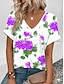Dámské Tričko Tisk Květinový Grafika Vinobraní stylové Klasické Krátký rukáv Do V Běžné topy Denní Víkend Oblečení na dovolenou Vodní modrá Žlutá Fialová Trávová zelená Léto Jaro