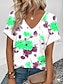 Dámské tričko k Dni svatého Patrika grafika písmena stylové klasické volnočasové krátký rukáv výstřih do V běžné topy každodenní potisk černá bílá zelená léto jaro