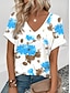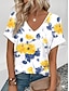 Dámské Tričko Tisk Květinový Grafika Rostliny Vinobraní stylové Klasické Krátký rukáv Do V Vroubkovaný krk Běžné topy Denní Jdeme ven Víkend Vodní modrá Žlutá Léto Jaro