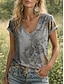 Dámské Tričko Tisk Květinový Grafika Čechy Vinobraní Na běžné nošení Krátký rukáv Do V Běžné topy Denní Šedá Léto Jaro