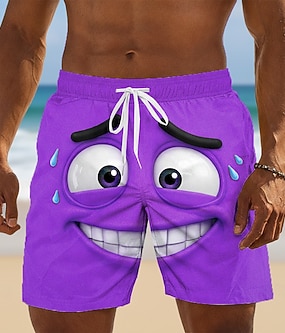 Pánské 3D tisk 3D komiks Trapný obličej Plavecké trenýrky Plavky pánské Surfovací šortky Středně vysoký pas Havajské Legrační Plážová dovolená Boční kapsy Podšívka ze síťoviny Elastická šňůrka v pase